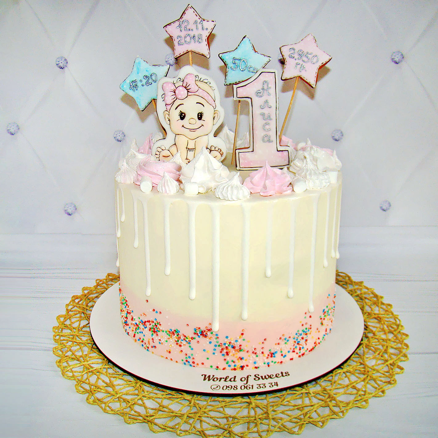 - Спрашиваете себя, как должен выглядеть торт на годик или крестины, красивым? Ярким? Нежным? Первое что необходимо учесть, так это то, чтобы торт на годик от обычного, каждодневного десерта. Праздничное угощение должно передавать в себе – значимость праздника, а именно даты и числа с метрики именинника.