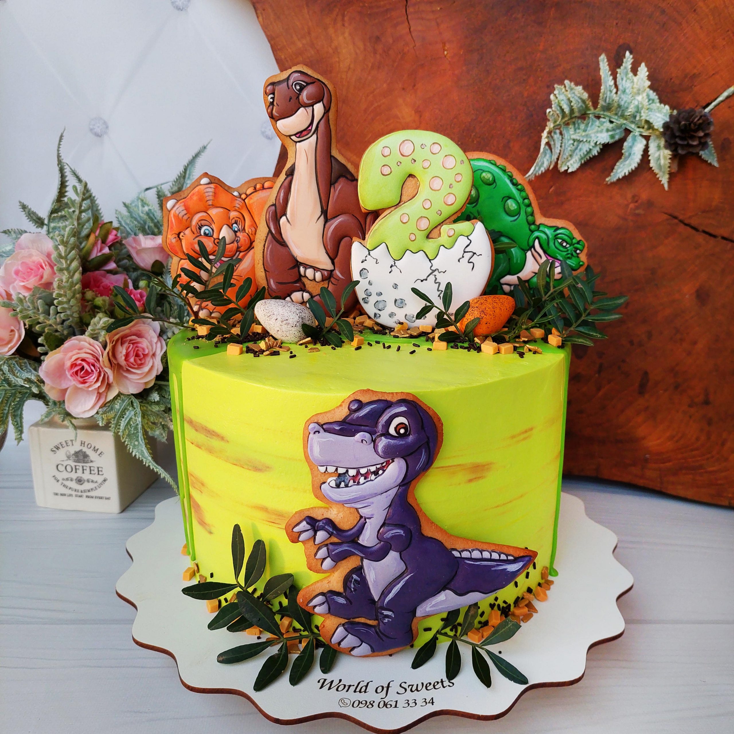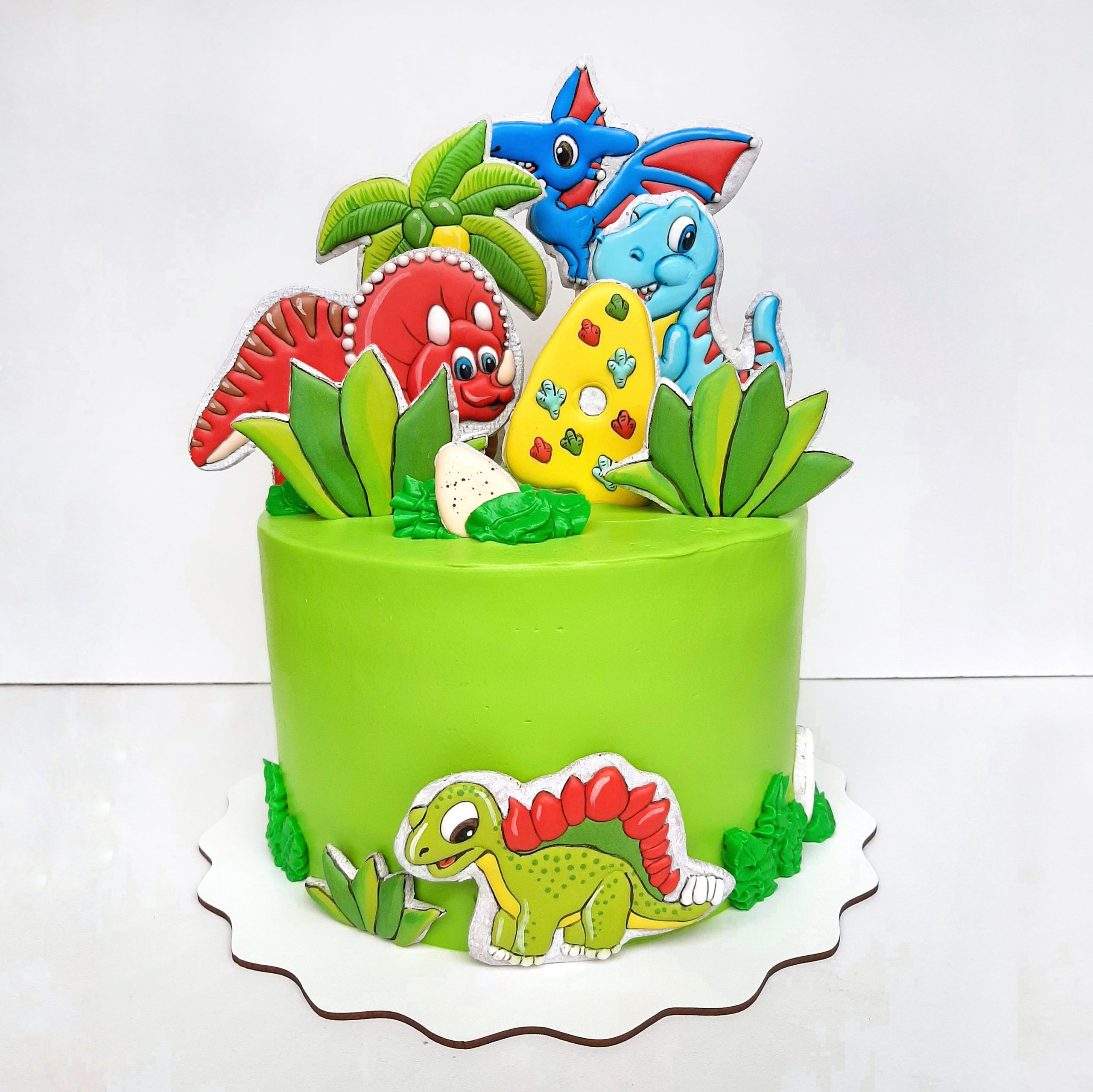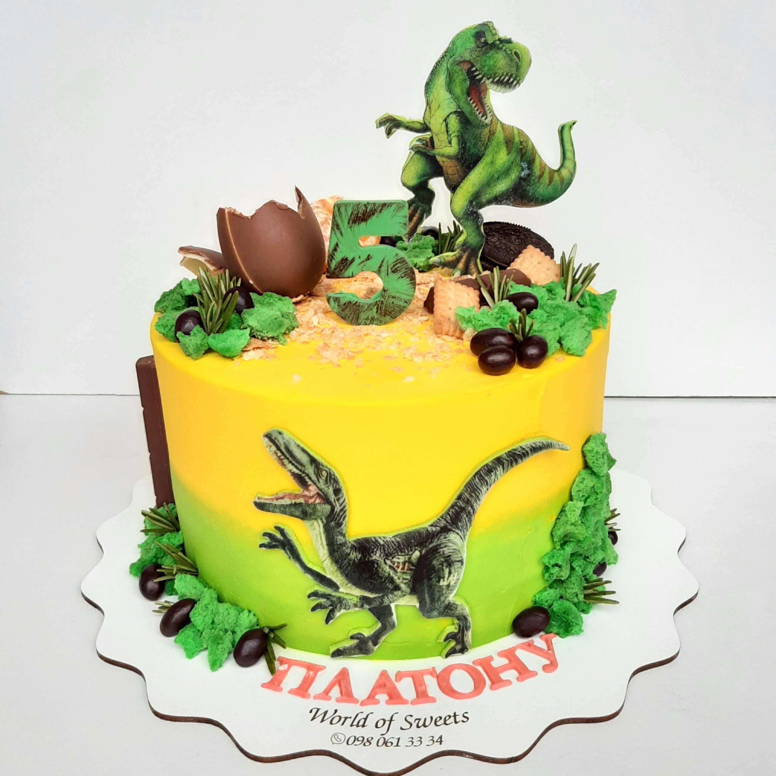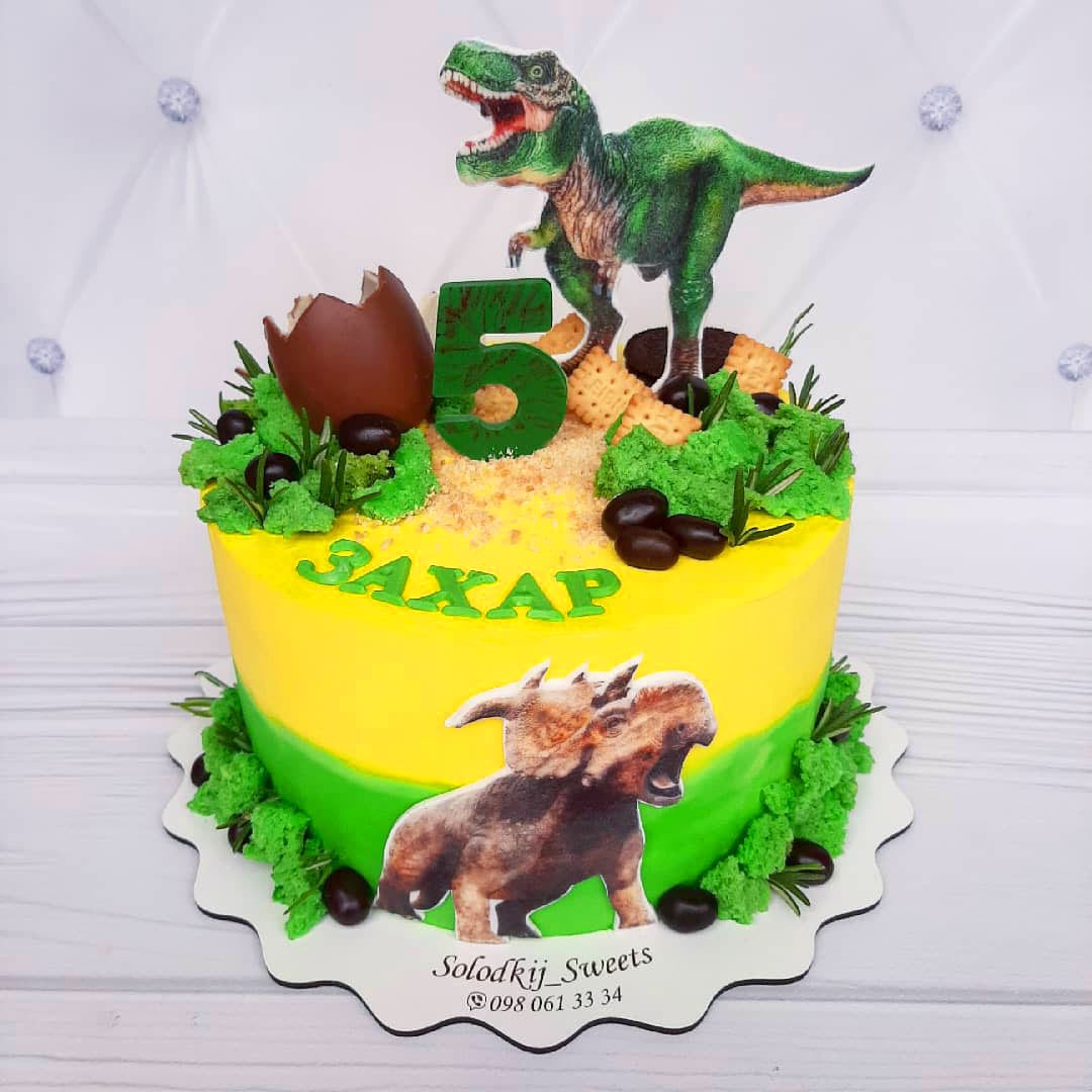 Торт с динозаврами — угощение юрского периода и не только, от студии кондитерской Solodkij-svit. Наши торты на заказ вовсе не такие как динозавры, а очень свежие!