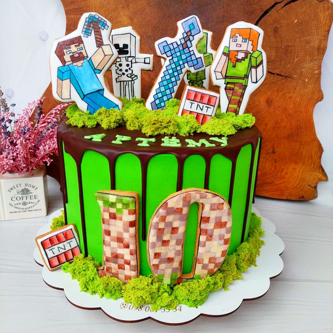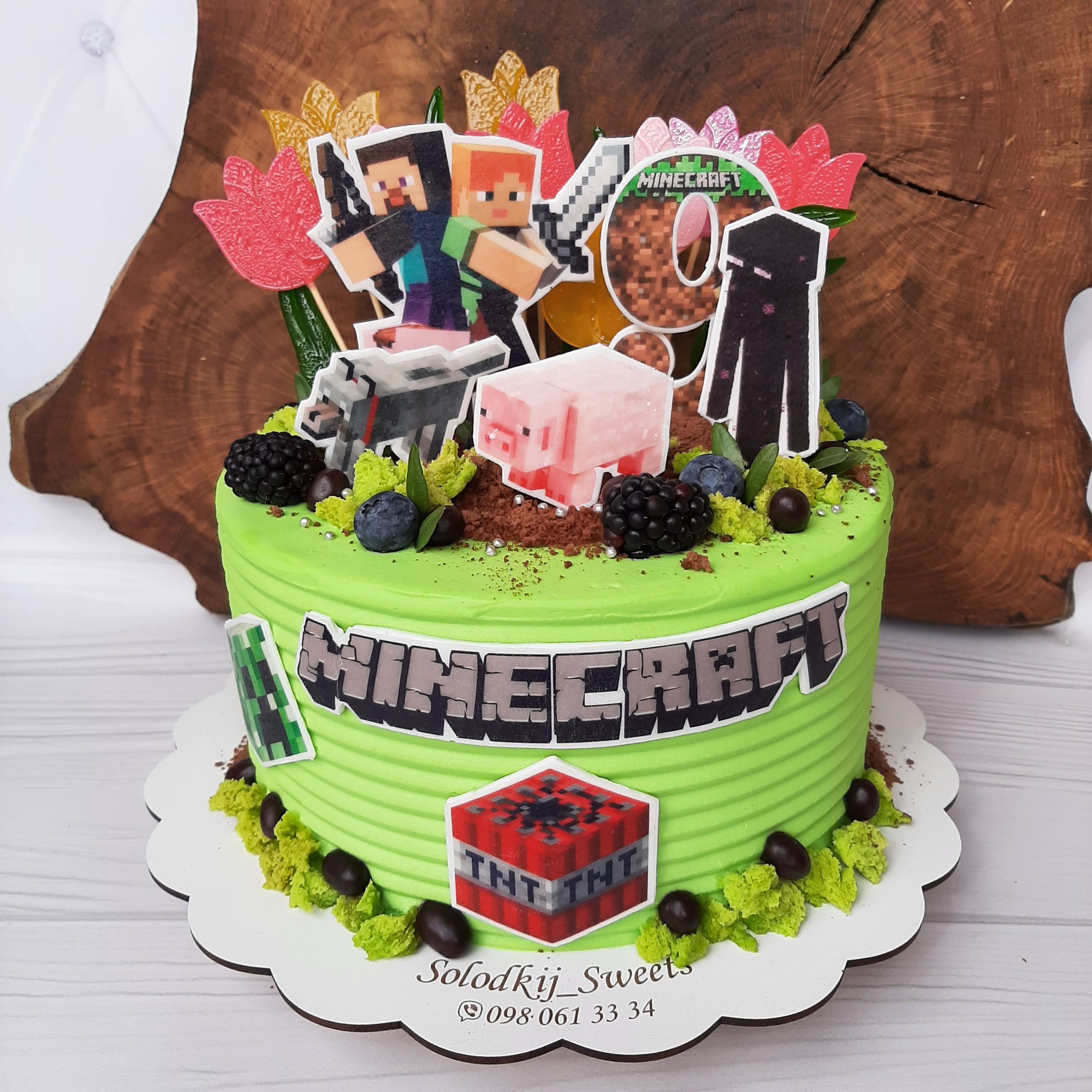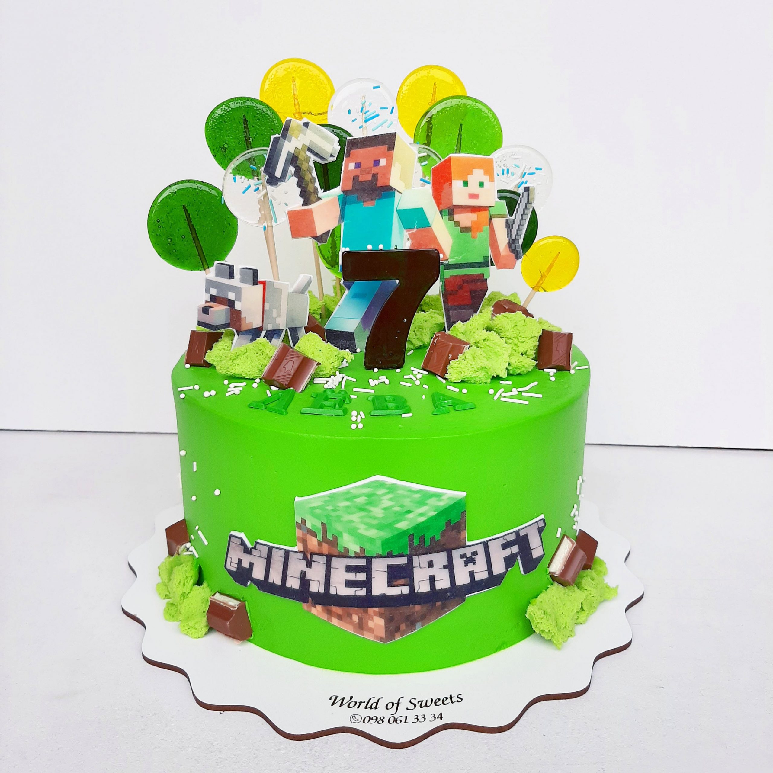 Купить торт Майнкрафт в Solodkij-svit просто и быстро. Стоит только позвонить или написать, консультант поможет с выбором торта и составам начинки. Торты на заказ – это не конвейерное производство, это эксклюзивные торты, уникальные. Они могут быть украшены фигурками из мастики, имбирными пряниками, топпреами, из сюжета игры.