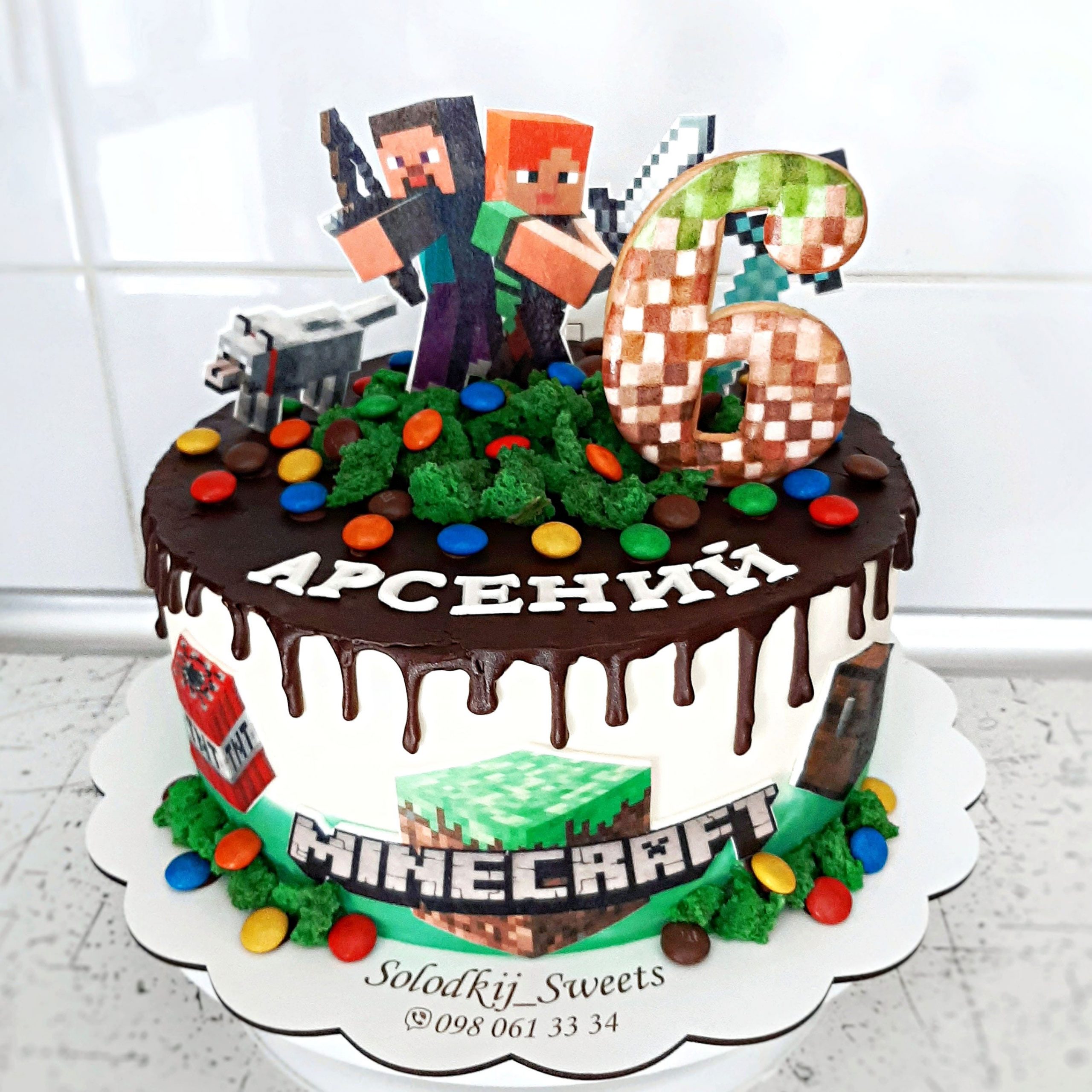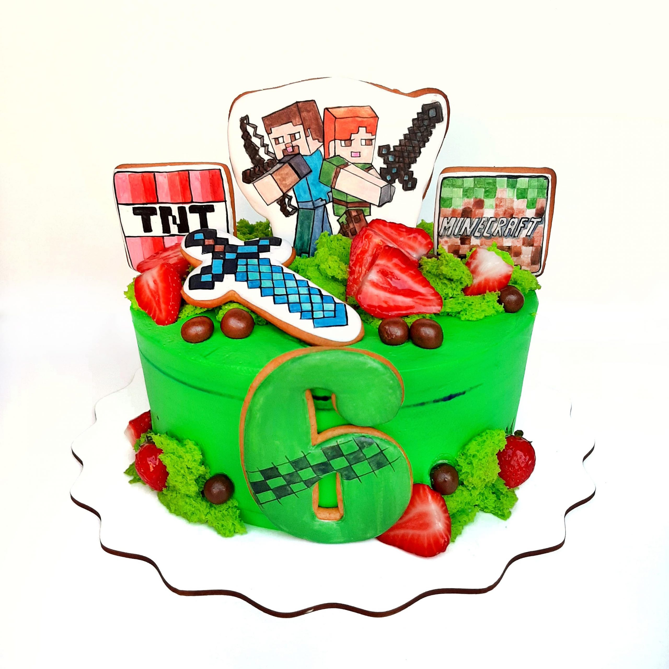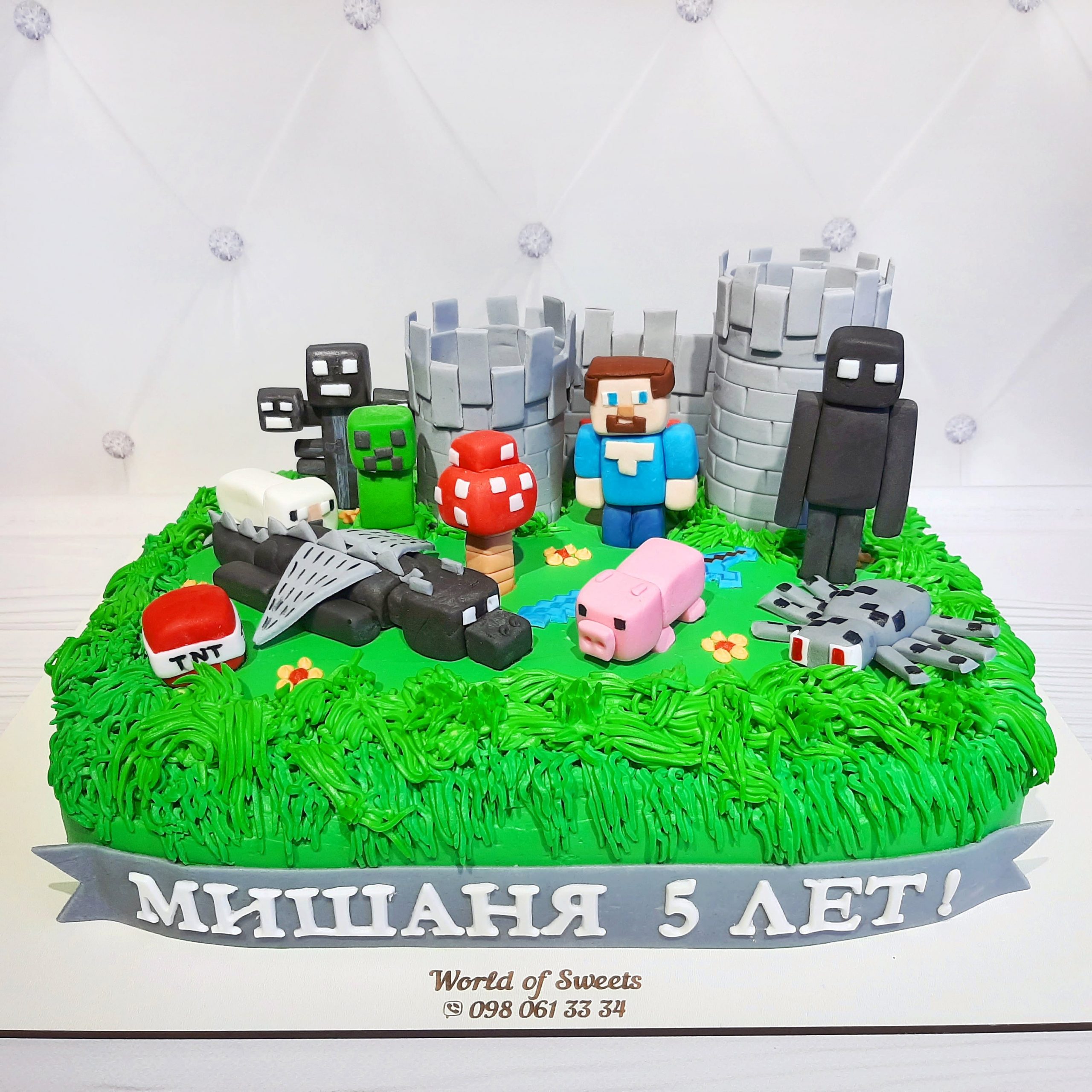 Купить торт Майнкрафт в Solodkij-svit просто и быстро. Стоит только позвонить или написать, консультант поможет с выбором торта и составам начинки. Торты на заказ – это не конвейерное производство, это эксклюзивные торты, уникальные. Они могут быть украшены фигурками из мастики, имбирными пряниками, топпреами, из сюжета игры.