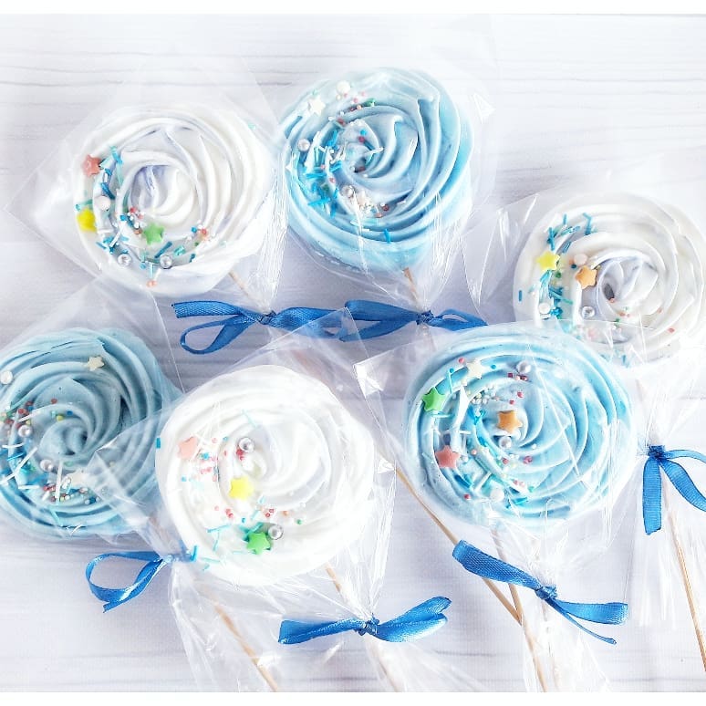 Яркое и вкусное безе на палочке — отличный вариант для candy bar. Возможны любые цветовые решения в стиле вашего мероприятия. Упакован десерт в пакетик и украшен красивой лентой.