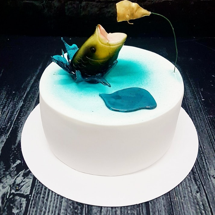 Основное покрытие торта рыбаку, может быть из мастики или крема, выбор всегда остаётся за Вами. Торт для рыбака, покрытый мастикой более практичен при перевозке. Торты рыбаку кремовый в форме рыбы или сюжета из жизни рыболова, более нежные, они требуют осторожного обращения. Такие десерты (кремовые), не любят долгих перевозок, и длительного времени без холодильной камеры!