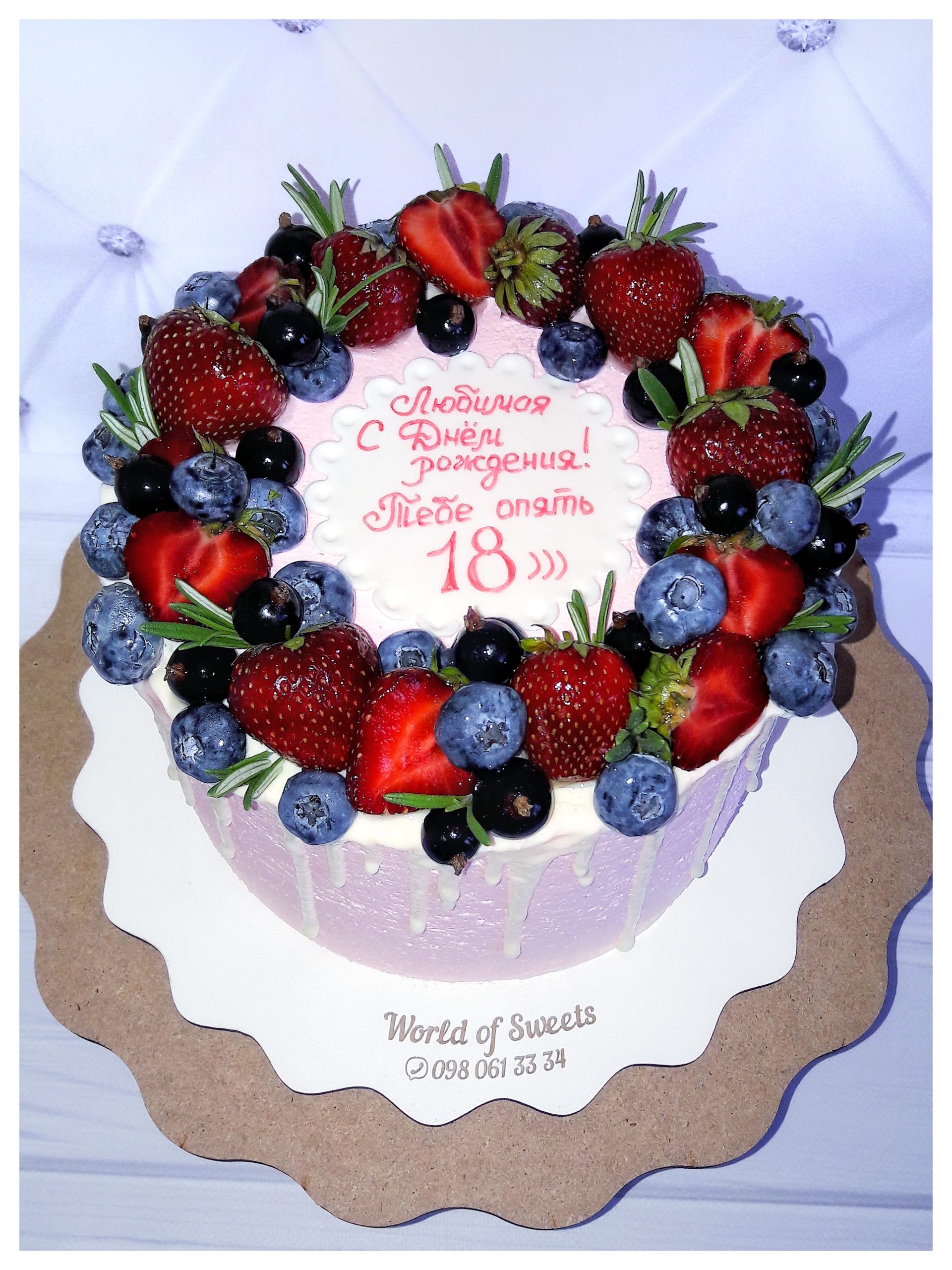 К женским тортам прекрасно подойдёт воздушный бисквит, белый или шоколадный. Лучше всего сочетается с ягодами, крем из нежнейших сливок, высшего качества. При таких пожеланиях, торт с ягодами для любимой девушки не оставит без внимание даже самых «холодных» гостей. Похвала от всех приглашённых дам на праздник, будет только Ваша. Все гости вечеринки, друзья в инстаграм и знакомые с facebook, будут восхищаться Вашей задумкой и нашим мастерством.