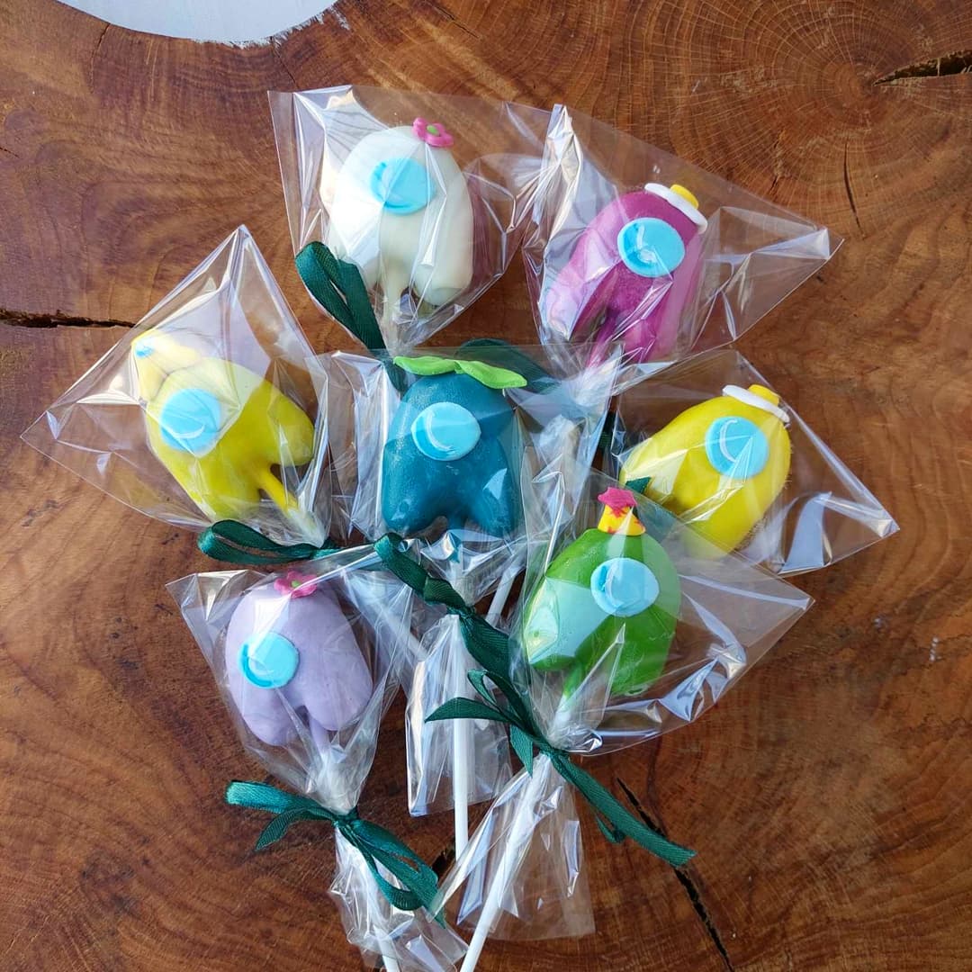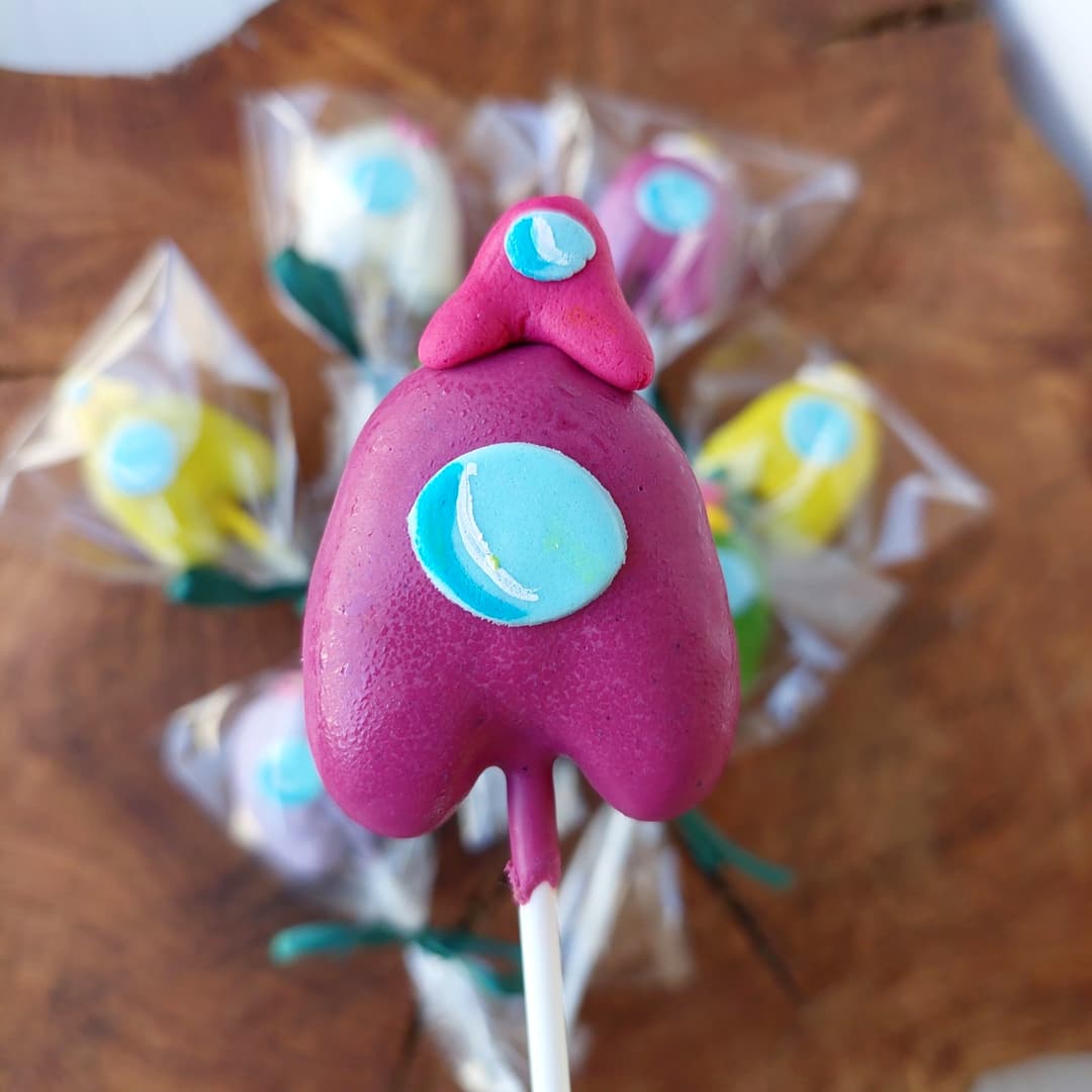 Кейк попси амонґ ас – це бісквіт у шоколаді на паличці (може містити начинку). Як основу кейк попса використовують класичний білий, або шоколадний бісквіт.