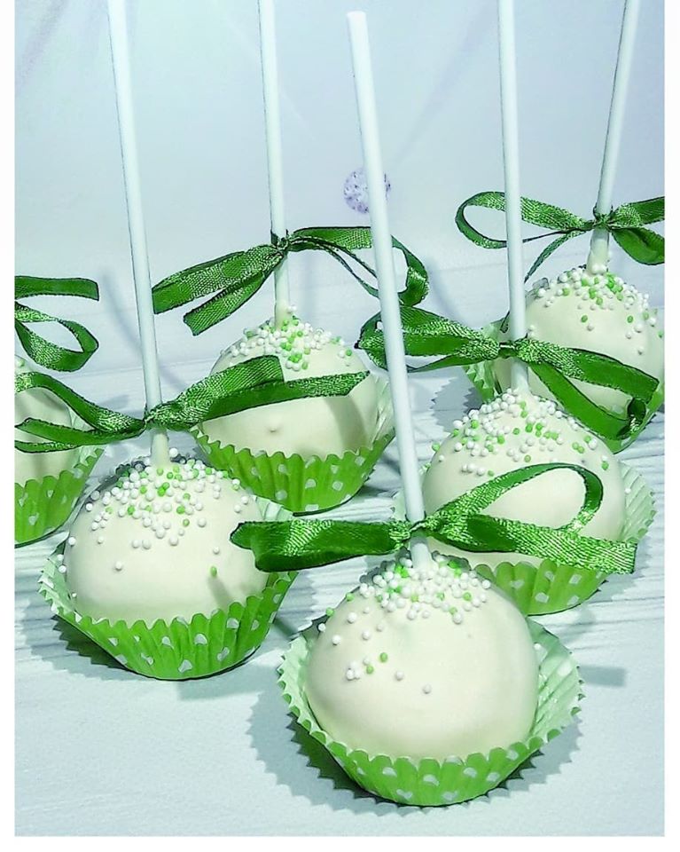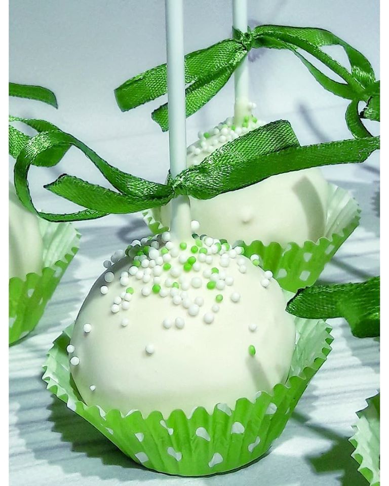 Класичні кейк попси, ідеально пишуться в будь-який урочистий захід. Десерт у світлих тонах – класика. Він ідеально підійде як до внутрішнього інтер’єру, так і до святкування на свіжому повітрі.