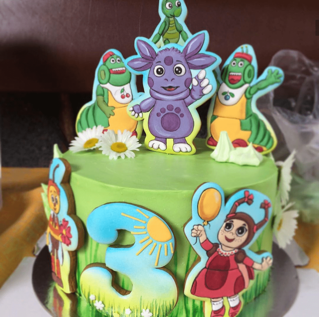 Прикрасити торт Лунтік можна як фігуркою з мастики, так і пряником з топерами.
