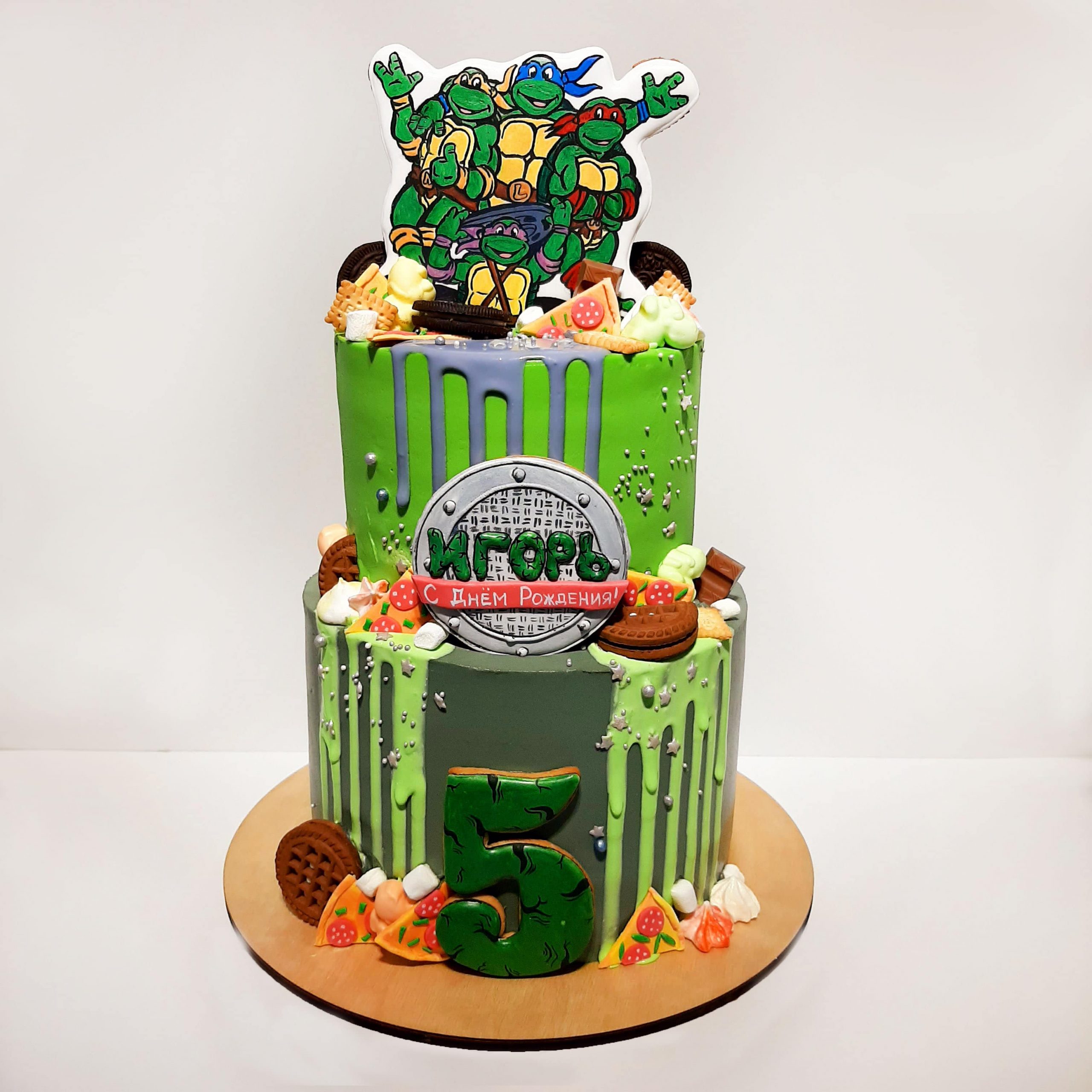 Замовити торт черепашки ніндзя у Києві потрібно за кілька днів до заходу. Підготовка десерту займає кілька днів, залежно від складності декору.