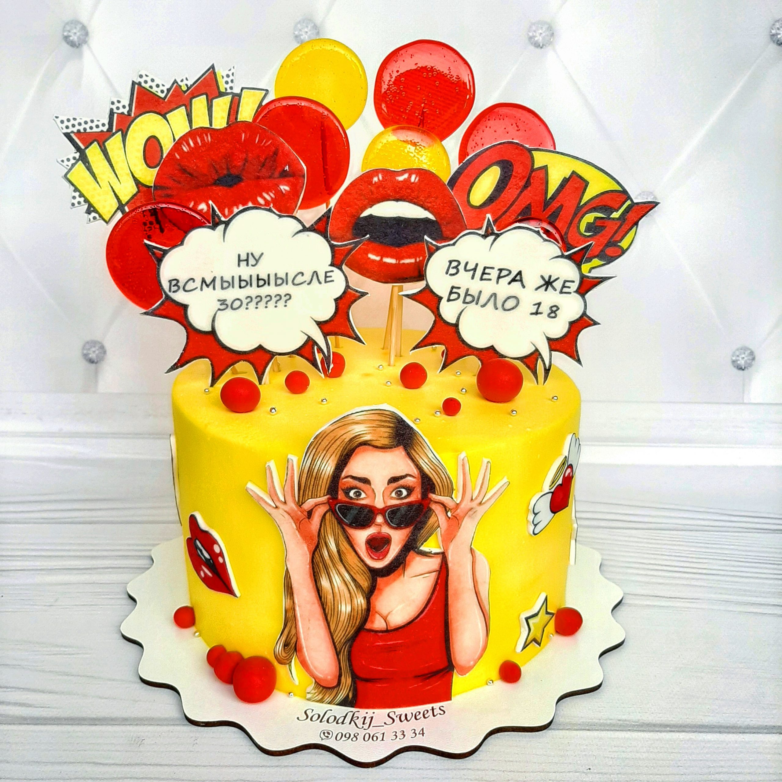 Прикрасити торти поп арт для жінок можна: