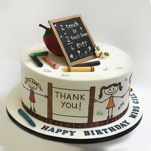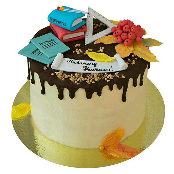 Приємним сюрпризом для наставника стане солодкий десерт. Замовити торт до дня вчителя з тематикою предмета або жартівливими картинками необхідно не менше ніж за 3-5 днів до свята. Торт для вчителя може бути оздоблений ніжними квітами або яскравими ягодами, фруктами. У розділі НАЧИНИ для торта виберіть смак майбутнього, солоденького десерту. Форма або дизайн може бути не стандартною: круглою, овальною, у вигляді серця або трикутника. Фігурки з мастики в образі шкільної атрибутики: лінійка, олівець, книга, зошити, відмінно доповнять дизайн.